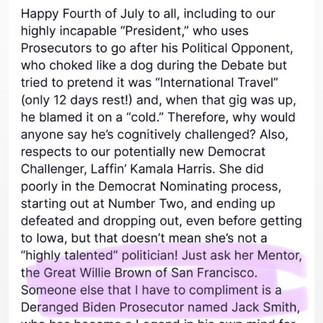 PS - I will no longer be on FB, IG, -- they censored my pages yesterday for posting a news report which FB confirmed to have not shown real info from the attempted assassination of President Trump.