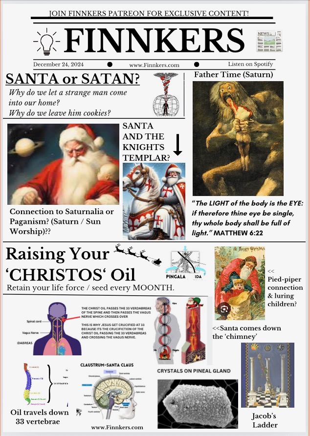 This represents your CHRISTOS OIL traveling out of your CLAUSTRUM — down your 33 vertebrae & to your solar plexus—raising the oil back up the spine will illuminate your 3rd eye and regenerate the cells in your body...This is ‘SANTA’S PRESENT.’ 🎁